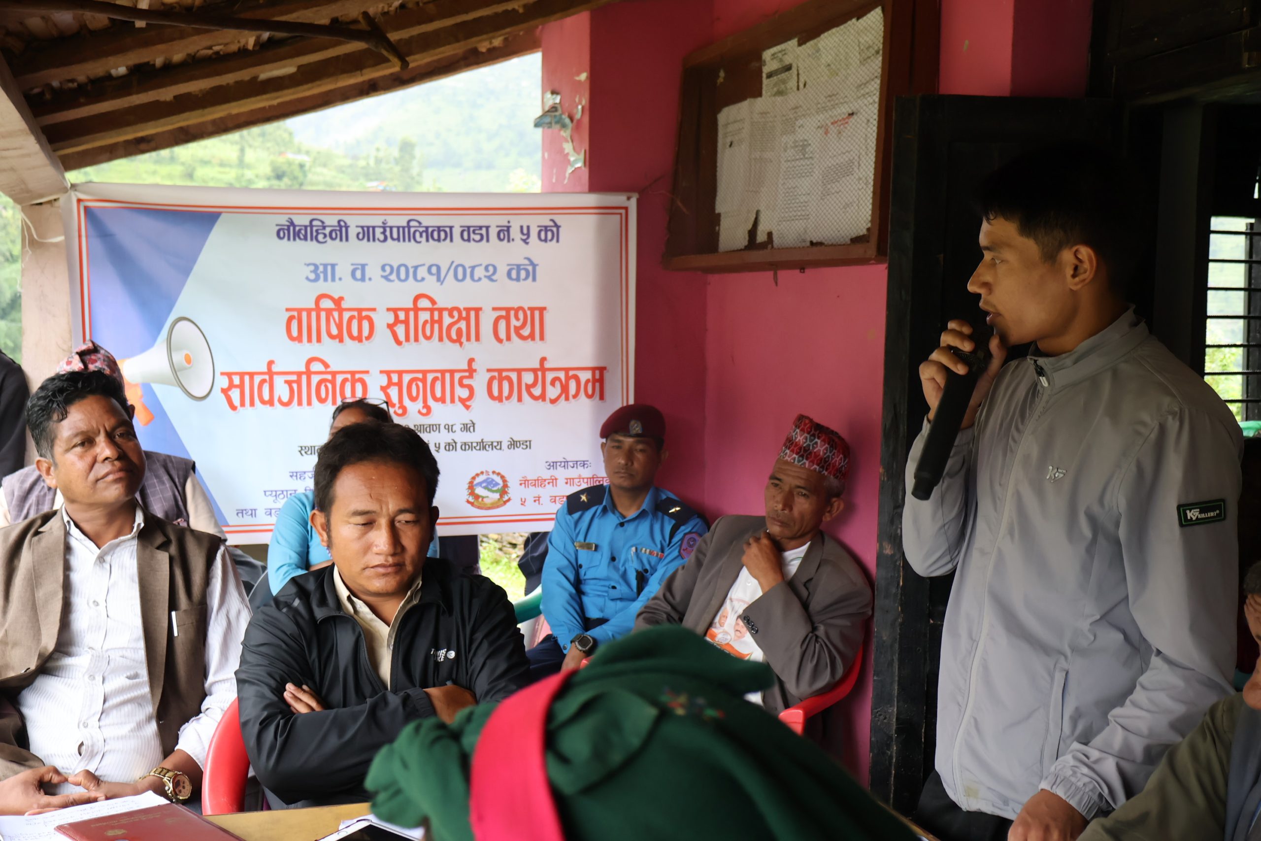 नौबहिनी गाउँपालिका वडा नं. ५ मा आ. व. २०८१/०८२ को वार्षिक समिक्षा तथा सार्वजनिक सुनुवाइ कार्यक्रम सम्पन्न भएको छ ।