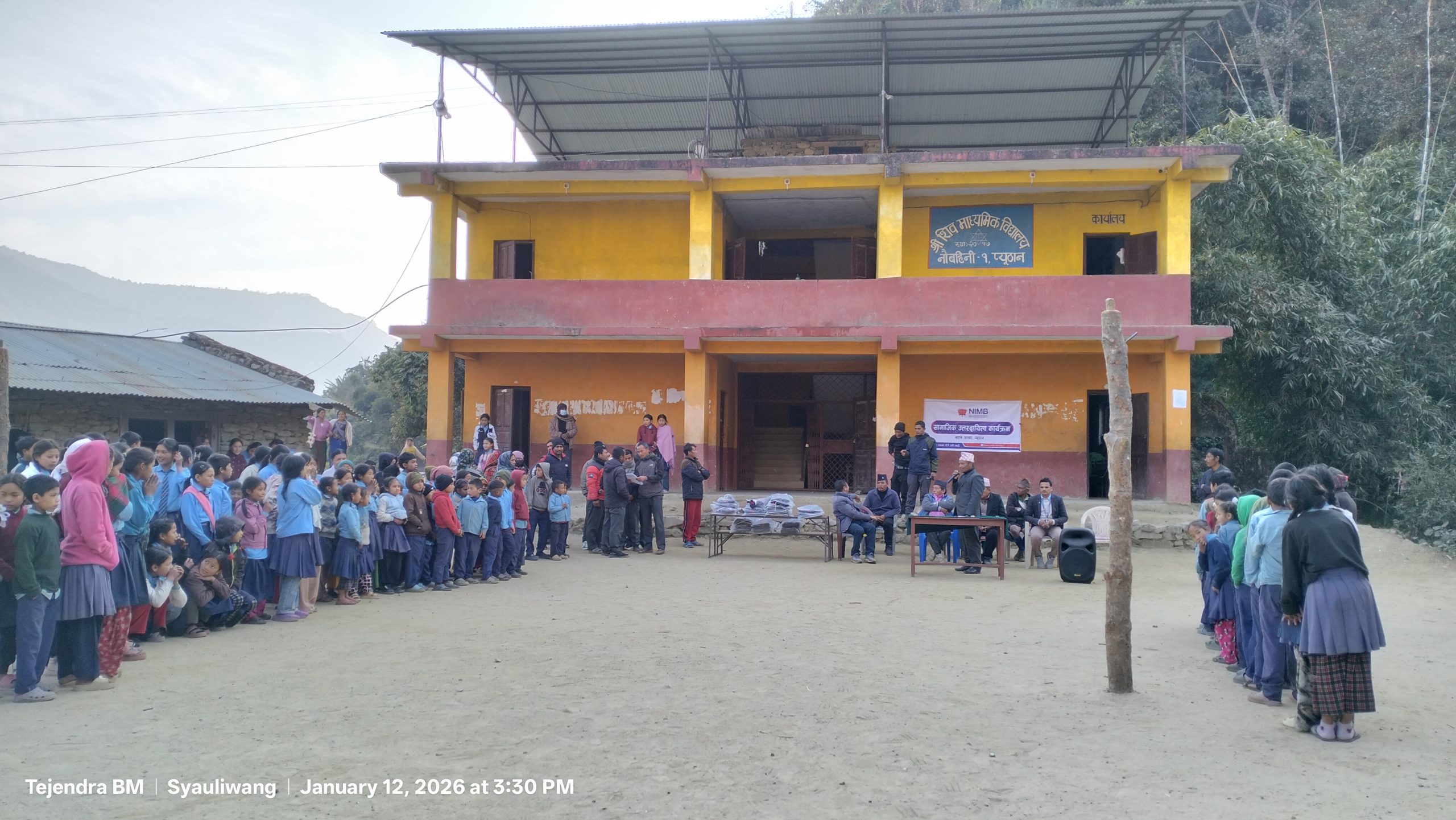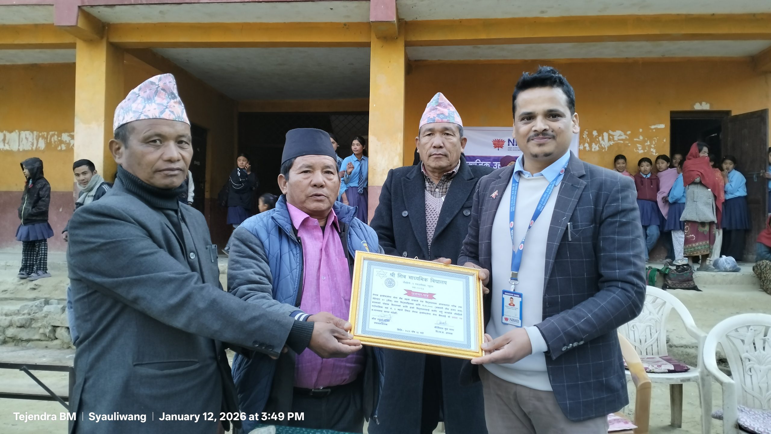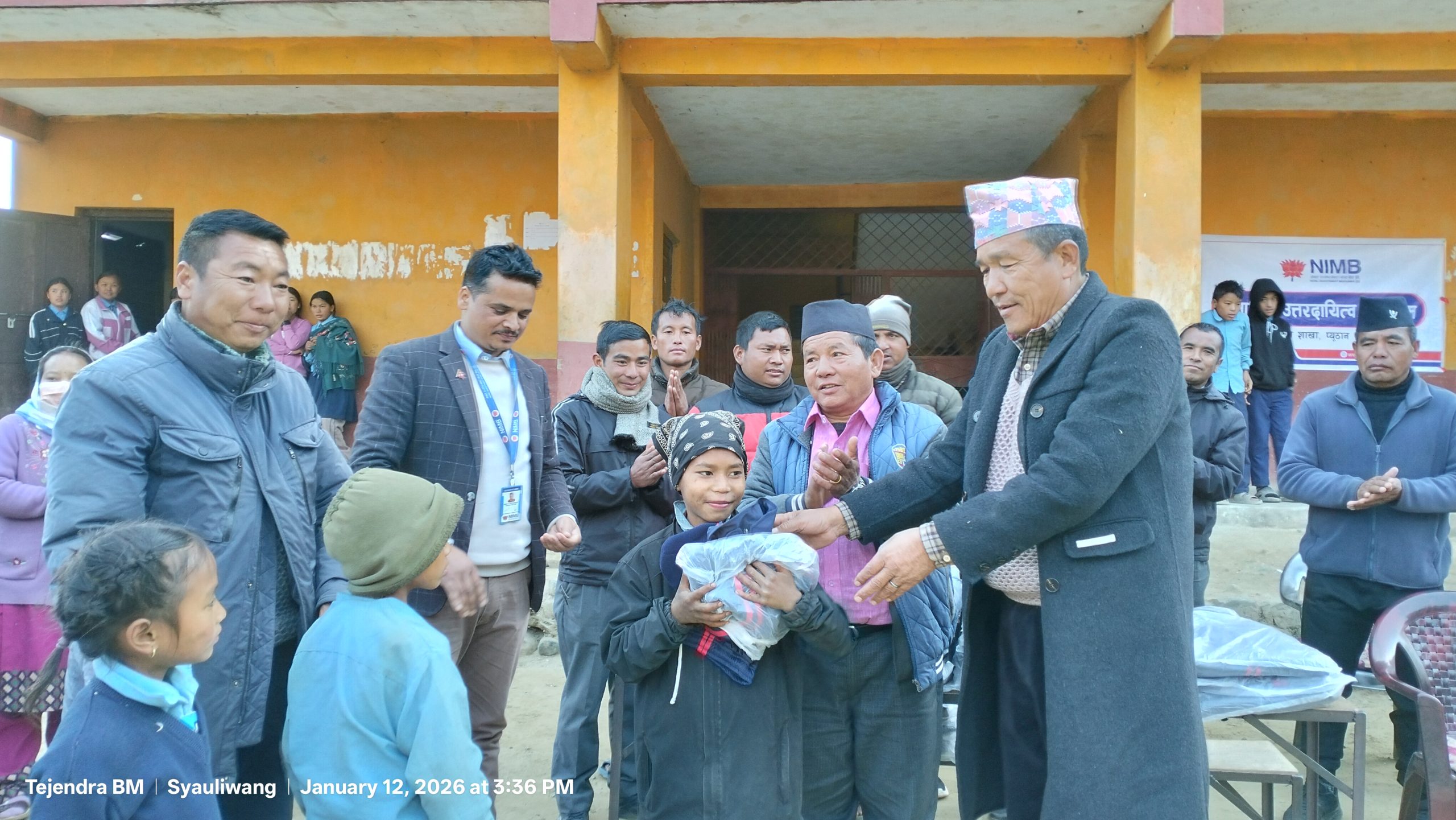 नेपाल इन्भेस्टमेन्ट मेगा बैंक बहाने, शाखाले संस्थागत सामाजिक उत्तरदायित्व कार्यक्रम अन्तर्गत विद्यार्थीहरुलाई न्यानो कपडा वितरण गरेको छ ।
